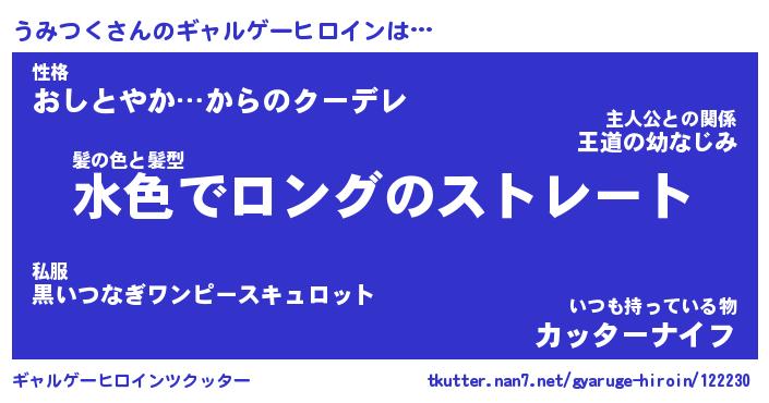 | 男性向けラノベタイトル風あだ名 | 『うみつくの憂鬱』 |