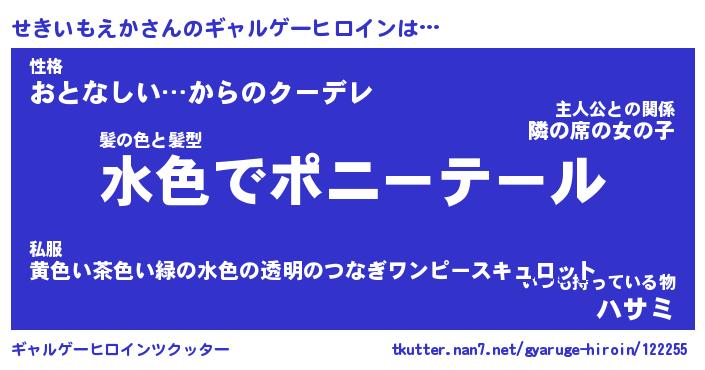 | 伝説のあだ名 | 『伝説の竜騎士せきいもえか』 |
