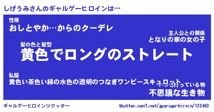 | ヘコむあだ名 | 『しげにゅー』『つくし』『しげっ子』 |