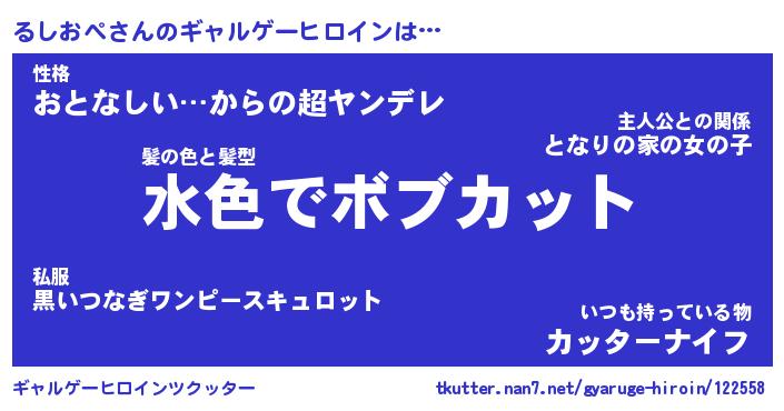 | 男性向けラノベタイトル風あだ名 | 『るしおぺの憂鬱』 |