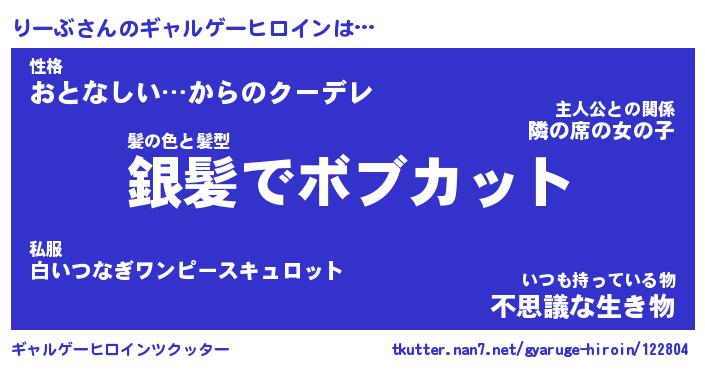 | 男性向けラノベタイトル風あだ名 | 『りーぶの憂鬱』 |