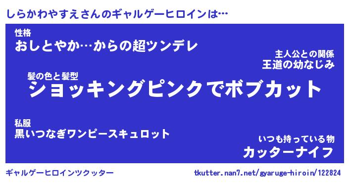 | 女子向けラノベタイトル風あだ名 | 『(仮)しらかわやすえのやんごとなき事情』 |