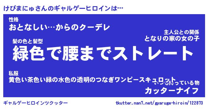 | ファンタジー風あだ名 | 『ケピフェル』『エターナルケピマニュー』 |