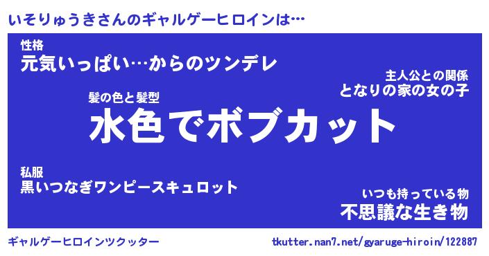 | 男性向けラノベタイトル風あだ名 | 『いそりゅうきの憂鬱』 |