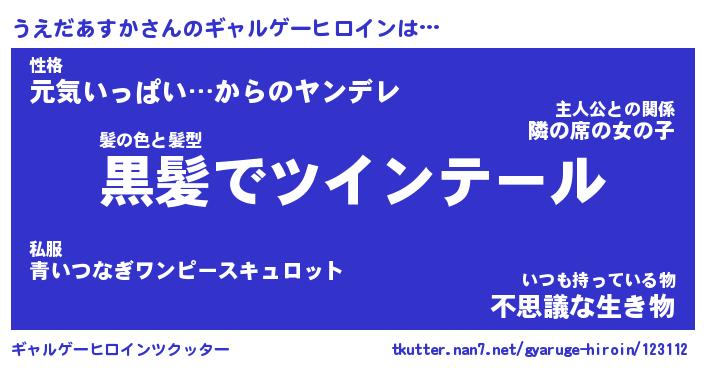 | 女子向けラノベタイトル風あだ名 | 『(仮)うえだあすかのやんごとなき事情』 |