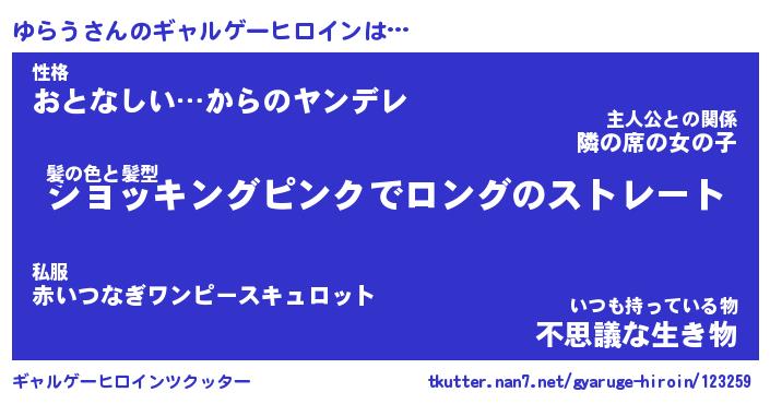 | 女子向けラノベタイトル風あだ名 | 『(仮)ゆらうのやんごとなき事情』 |