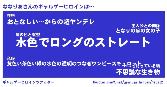 | 意味不明あだ名 | 『ペロリンななりあ』『永久保存ななりあ』 |