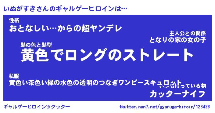 | ファンタジー風あだ名 | 『イヌフェル』『エターナルイヌガスキー』 |
