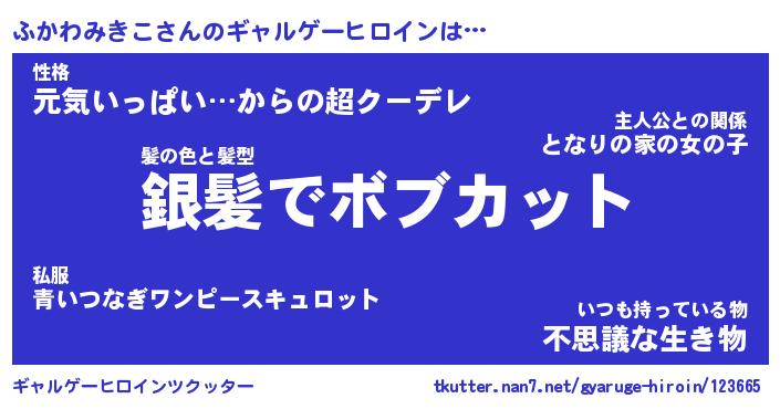 | ヒーロー風カッコイイあだ名 | 『スーパーフカワミキコ』『魔戒騎士フカ』 |
