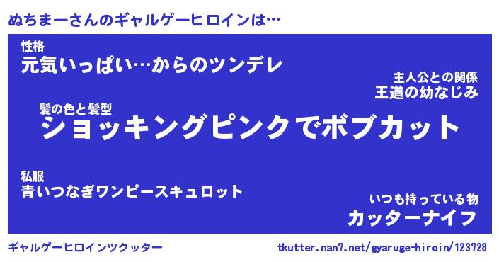 | 男性向けラノベタイトル風あだ名 | 『ぬちまーの憂鬱』 |