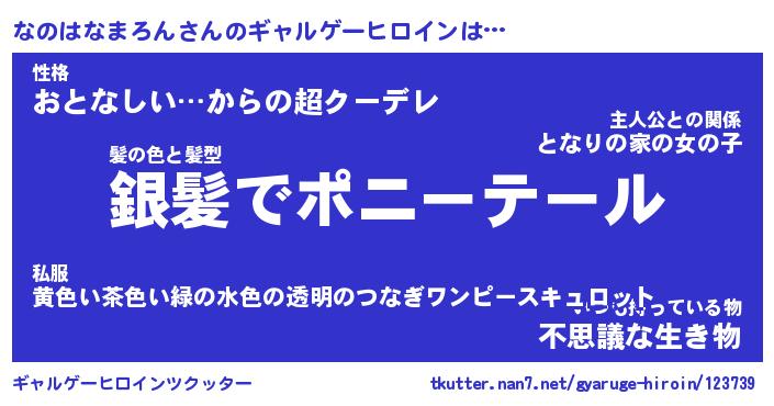 | 女子向けラノベタイトル風あだ名 | 『なのはなまろん姫と円卓の騎士』 |