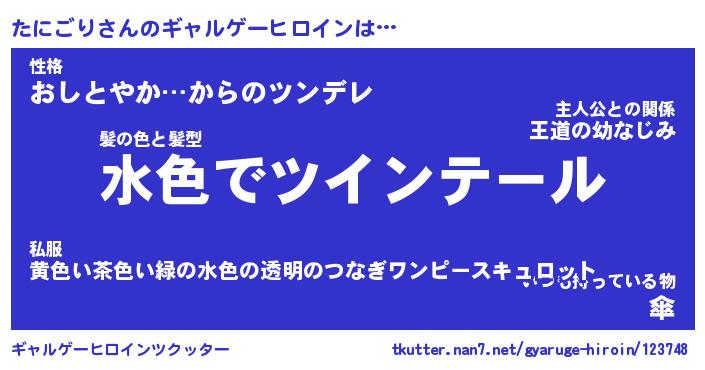 | 男性向けラノベタイトル風あだ名 | 『たにごりの憂鬱』 |