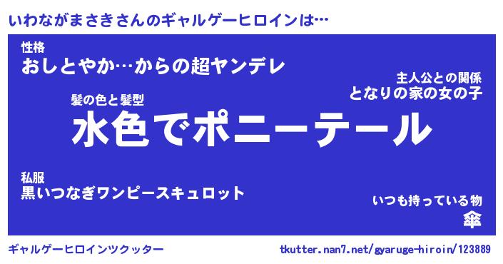| 女子向けラノベタイトル風あだ名 | 『(仮)いわながまさきのやんごとなき事情』 |