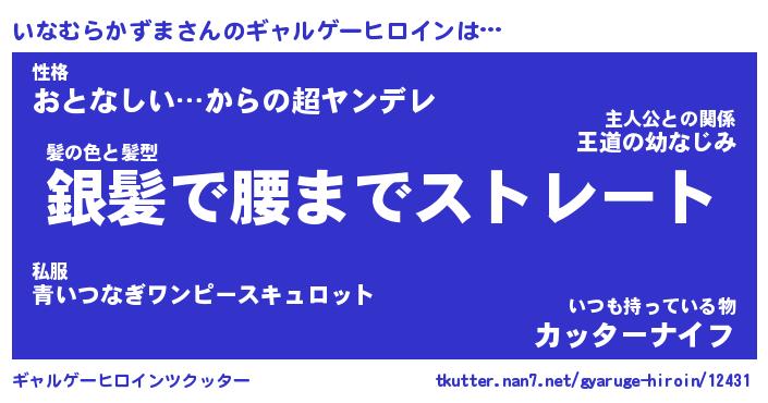 | 男性向けラノベタイトル風あだ名 | 『いなむらかずまの憂鬱』 |