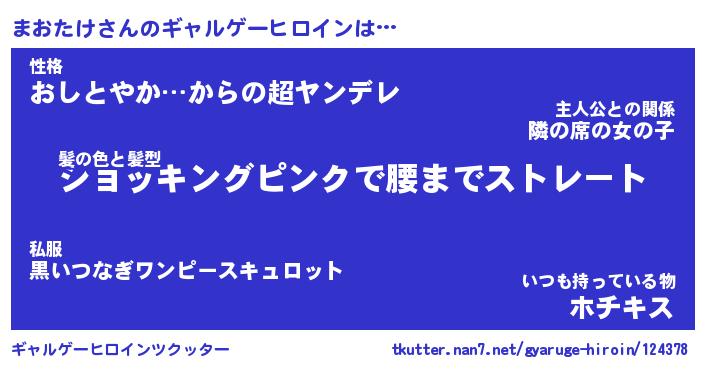 | 意味不明あだ名 | 『ペロリンまおたけ』『永久保存まおたけ』 |
