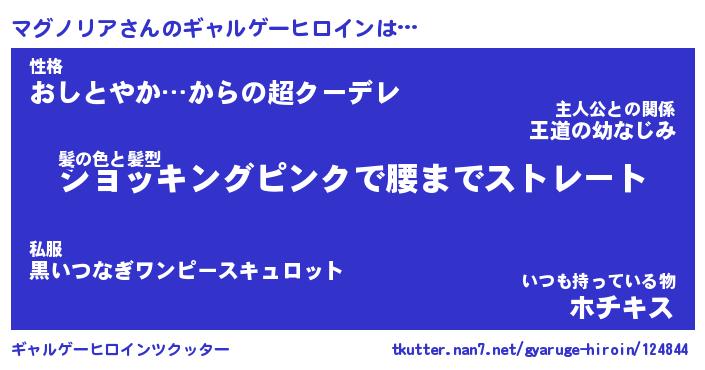 | 女子向けラノベタイトル風あだ名 | 『(仮)マグノリアのやんごとなき事情』 |