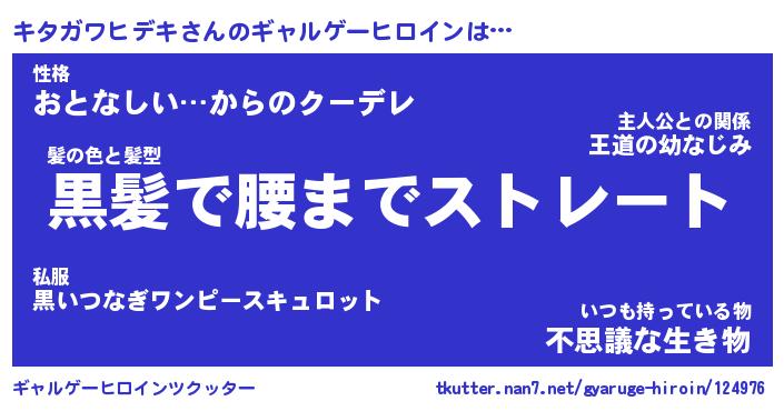 | 男性向けラノベタイトル風あだ名 | 『キタガワヒデキの憂鬱』 |