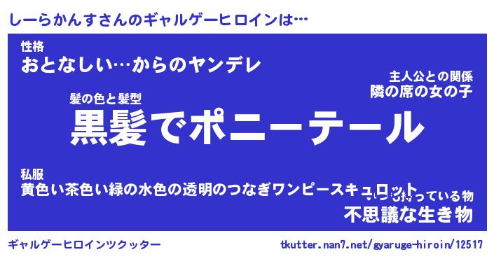 | 女子向けラノベタイトル風あだ名 | 『(仮)しーらかんすのやんごとなき事情』 |