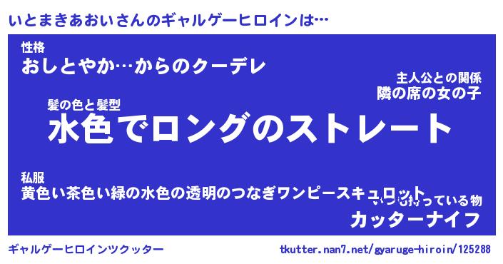 | 伝説のあだ名 | 『伝説のスナイパーいとまきあおい』 |