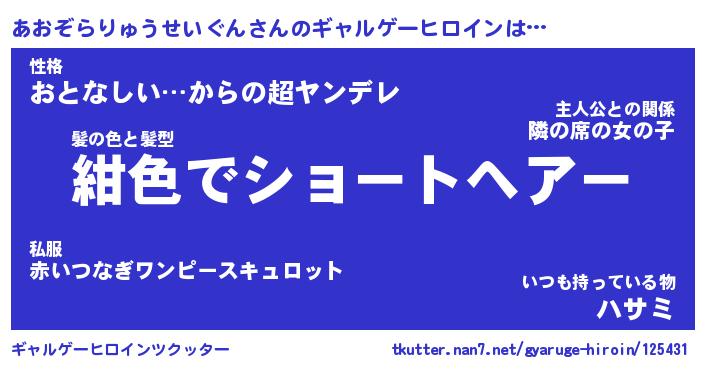 | 男性向けラノベタイトル風あだ名 | 『アオゾラリュウセイグンアートオンライン』 |