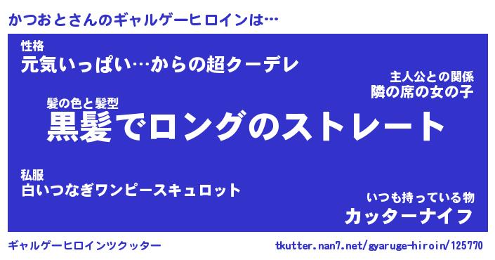 | ヒーロー風カッコイイあだ名 | 『スーパーカツオト』『黄金騎士カツ』 |