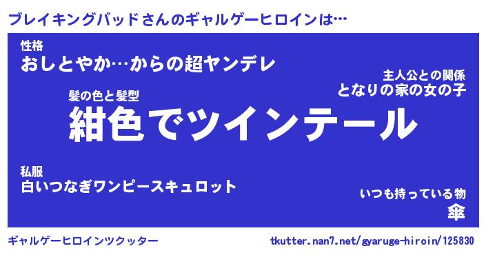| 女子向けラノベタイトル風あだ名 | 『誰かこのブレイキングバッドを説明してください! ~契約から始まるウェディング~』 |
