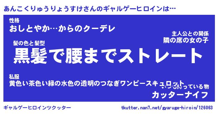 | 男性向けラノベタイトル風あだ名 | 『あんこくりゅうりょうすけの憂鬱』 |