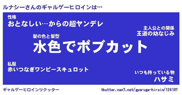 | ファンタジー風あだ名 | 『ルナフェル』『エターナルルナシーー』 |