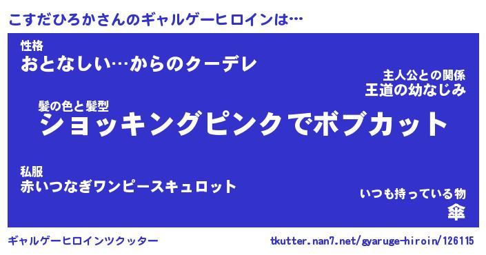 | 男性向けラノベタイトル風あだ名 | 『こすだひろかの憂鬱』 |