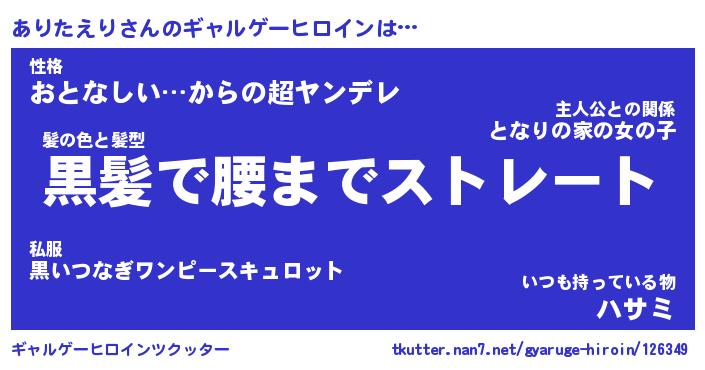 | 男性向けラノベタイトル風あだ名 | 『ありたえりの憂鬱』 |