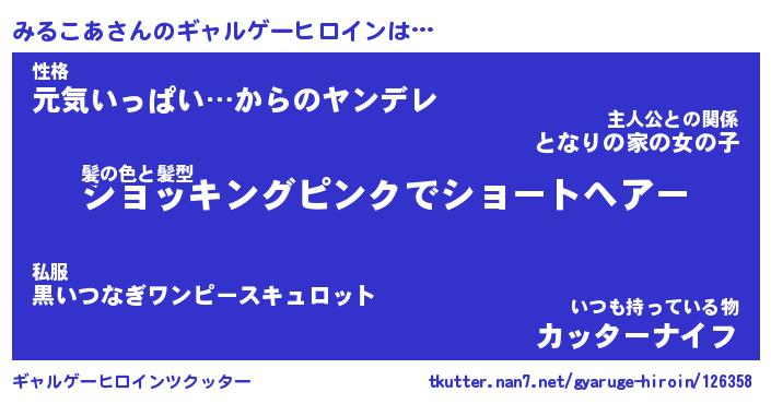 | 意味不明あだ名 | 『ペロリンみるこあ』『永久保存みるこあ』 |