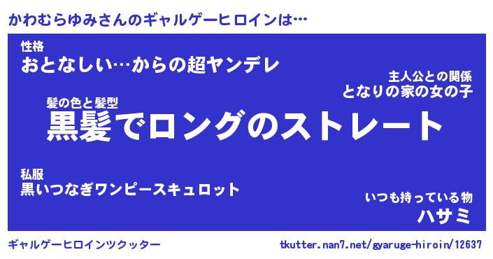 | 男性向けラノベタイトル風あだ名 | 『かわむらゆみの憂鬱』 |