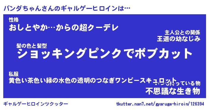 | 男性向けラノベタイトル風あだ名 | 『パンダちゃんの憂鬱』 |