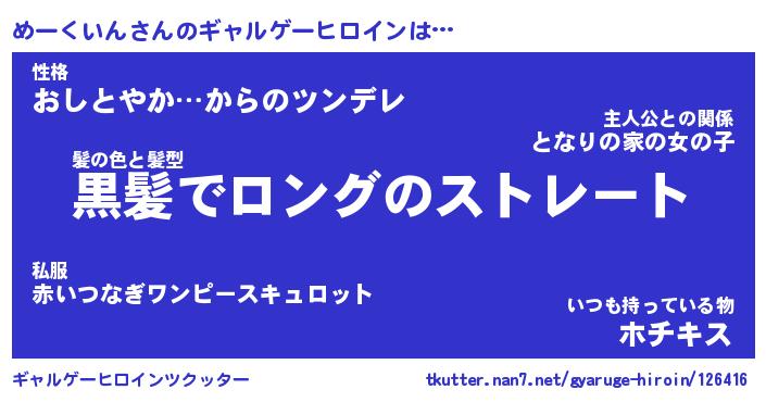 | 男性向けラノベタイトル風あだ名 | 『めーくいんの憂鬱』 |