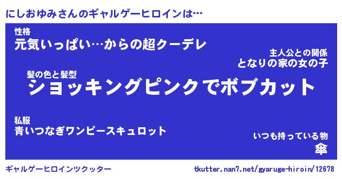 | 肩書あだ名 | 『にしおゆみ御曹司』『にしおゆみ大統領』 |