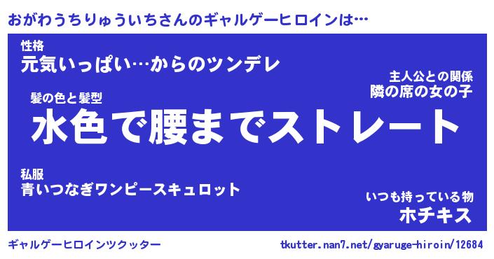 | 女子向けラノベタイトル風あだ名 | 『(仮)おがわうちりゅういちのやんごとなき事情』 |