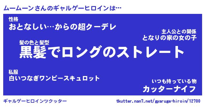 | 男性向けラノベタイトル風あだ名 | 『ムームーンの憂鬱』 |