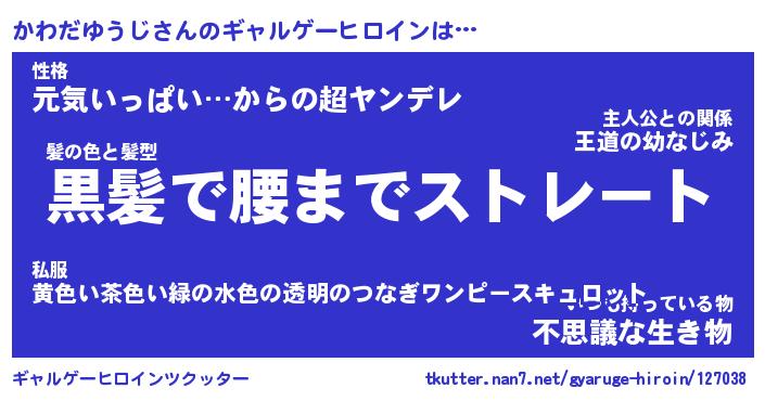 | 男性向けラノベタイトル風あだ名 | 『かわだゆうじの憂鬱』 |