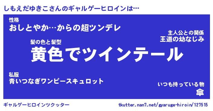 | 肩書あだ名 | 『しもえだゆきこ御曹司』 |