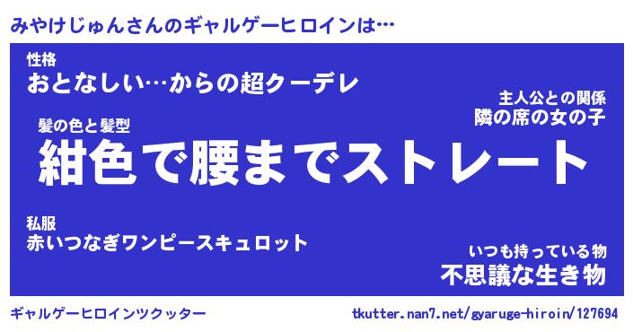 | ヒーロー風カッコイイあだ名 | 『スーパーミヤケジュン』『天弓騎士ミヤ』 |