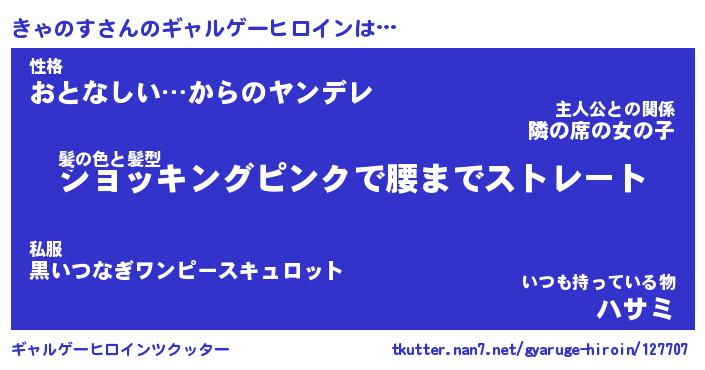 | 男性向けラノベタイトル風あだ名 | 『きゃのすの憂鬱』 |