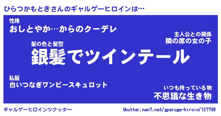 | 男性向けラノベタイトル風あだ名 | 『ひらつかもときの憂鬱』 |