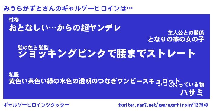 | 男性向けラノベタイトル風あだ名 | 『みうらかずとの憂鬱』 |