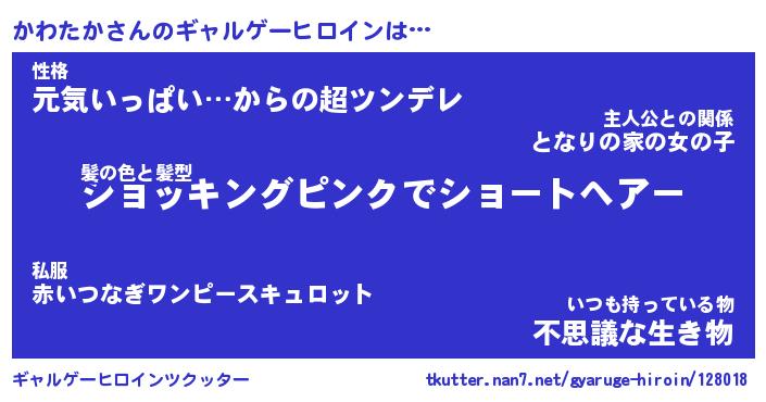 | 男性向けラノベタイトル風あだ名 | 『かわたかの憂鬱』 |