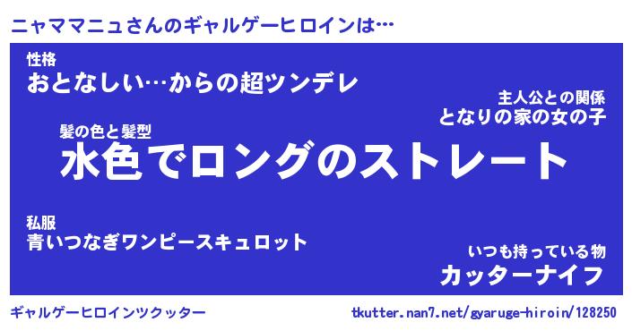 | ヘコむあだ名 | 『ニャにゅー』『豆乳』『ニャっ子』 |