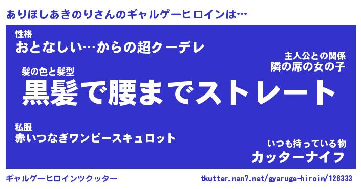 | 女子向けラノベタイトル風あだ名 | 『ありほしあきのり姫と円卓の騎士』 |