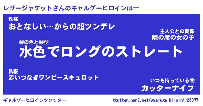 | 女子向けラノベタイトル風あだ名 | 『(仮)レザージャケットのやんごとなき事情』 |