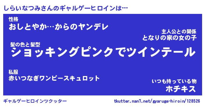 | 伝説のあだ名 | 『伝説のスナイパーしらいなつみ』 |