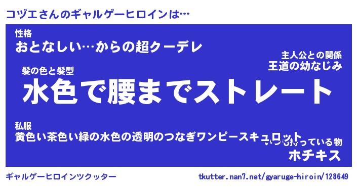 | ファンタジー風あだ名 | 『コヅフェル』『エターナルコヅエー』 |