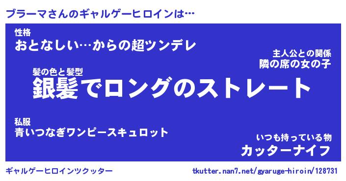 | ファンタジー風あだ名 | 『ブラフェル』『エターナルブラーマー』 |